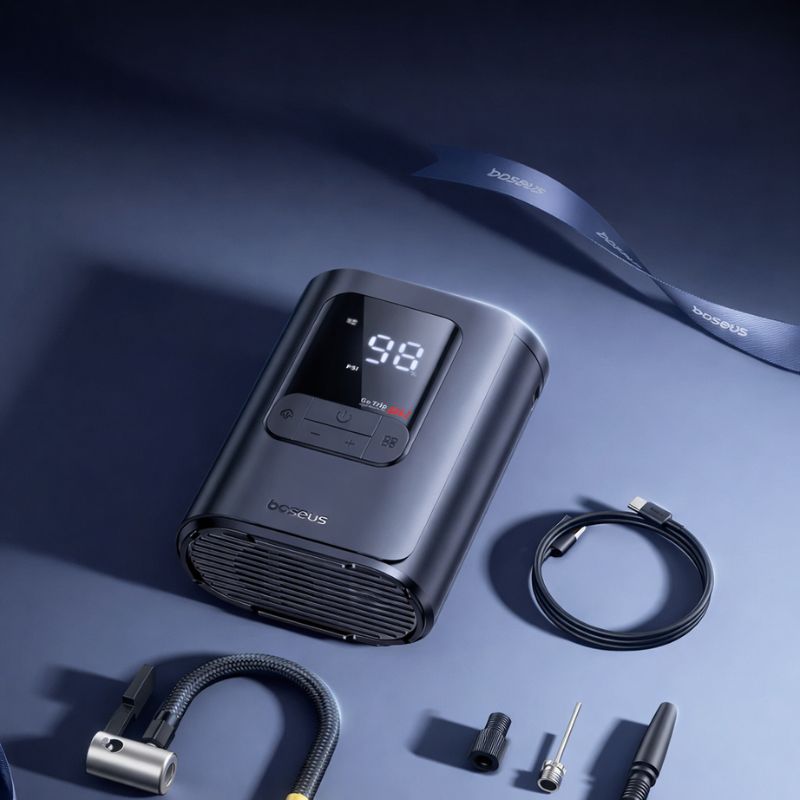 Le Mini gonfleur de pneus sans fil 5000 mAh BASEUS est équipé d’un moteur puissant de 82W associé à une turbine Turbo Fill de 19 mm, permettant de regonfler un pneu complètement à plat en seulement 5 minutes. Cette performance surpasse largement les gonfleurs classiques et garantit un gain de temps considérable en situation d’urgence comme au quotidien.